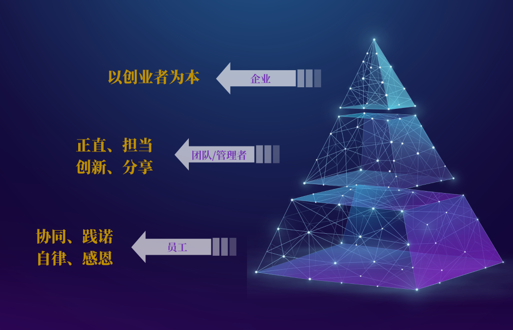 面對撲面而來的創(chuàng)新時代,弘信創(chuàng)業(yè)工場進一步明確“以創(chuàng)業(yè)者為本”的核心理念,針對團隊與管理層提出“正直、擔(dān)當、創(chuàng)新、分享”的價值觀要求,將“協(xié)同、踐諾、自律、感恩”作為每一位員工都應(yīng)秉承的底層價值觀,以全新的精神面貌迎接二次創(chuàng)業(yè)。